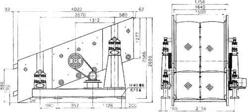 圖6 SZZ21500×4000自定中心振動篩安裝尺寸