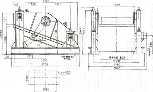 圖7 SZZ1800×3600自定中心振動篩安裝尺寸